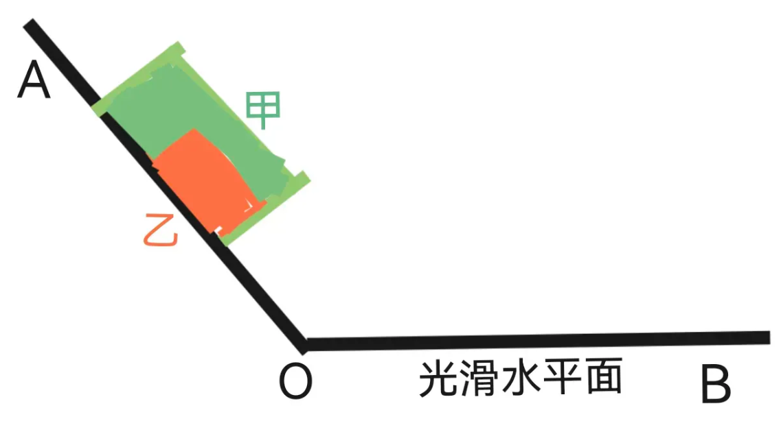 自然科学讲求“严谨自洽”,有一反例就证明理论不正确,我不想反复游说了,仅用一个图示问题质问一下:从同一斜面上同时滑下的质量不同的甲乙两个滑块,在理想水平面上哪个先停下来?哪个运动的距离更长呢?