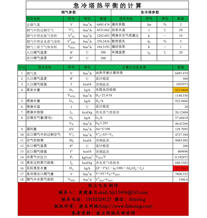 该表格是我在网上查找了很长时间都没有找到参考例子的情况下,用deepseek查询急冷塔计算方法时,deepseek给出的答案又是显热计算,又是潜热计算,很是麻烦,因此本人根据自己的学习思路编写的网上最牛的表格,该表格提供了完整的计算步骤。最后真诚地希望广大网友对该软件提出合理的建议,在此站长将对你的建议和意见表示诚挚的谢意和衷心的感谢。