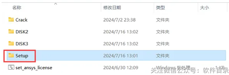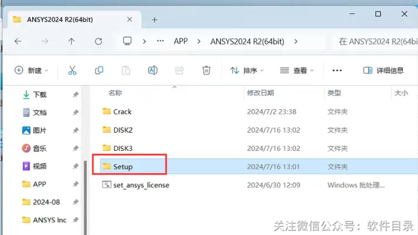 25.打开安装包解压后的【ANSYS2024 R2(64bit)文件夹,双击打开【Setup】文件夹。