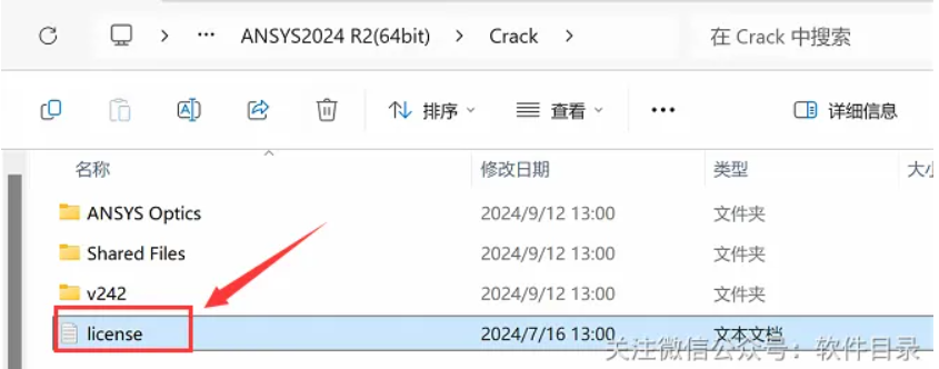 13.打开【Crack文件夹】,双击打开【license】文件。