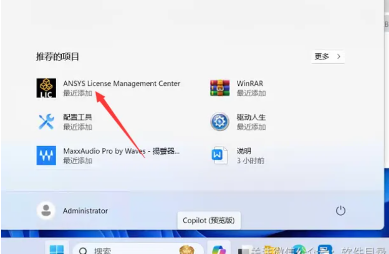 19.点击桌面任务栏中的【开始图标】>点击【所有应用】>双击展开【ANSYS,Inc. License Manager】文件夹,点击【ANSYS License Management Center】。
