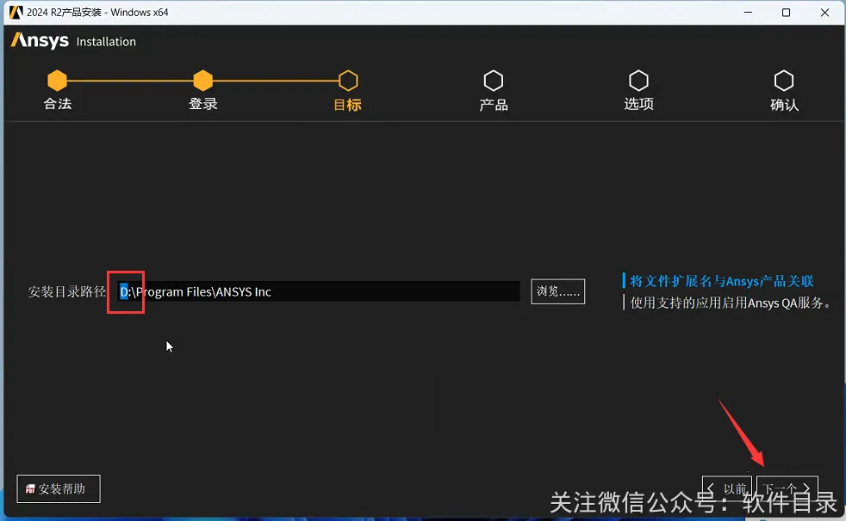 29.修改路径地址中的第一个字符C可更改安装位置(如:把C改为D软件将安装到D盘),点击【下一个】。