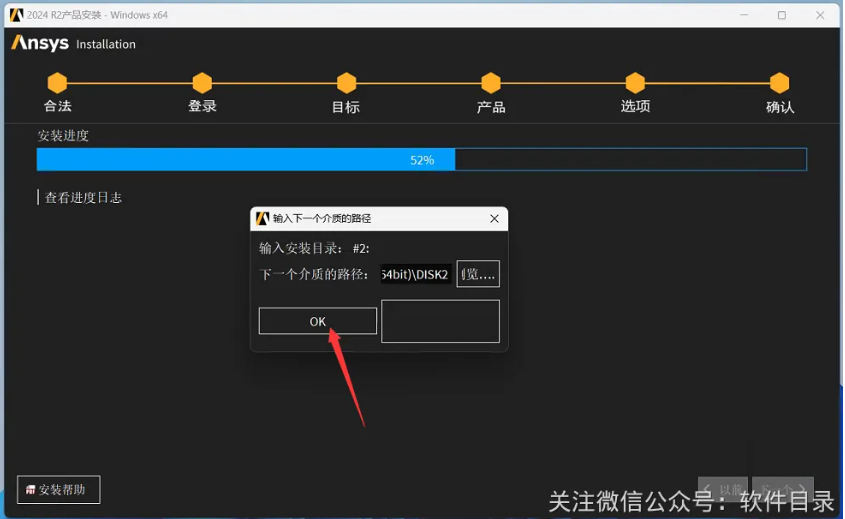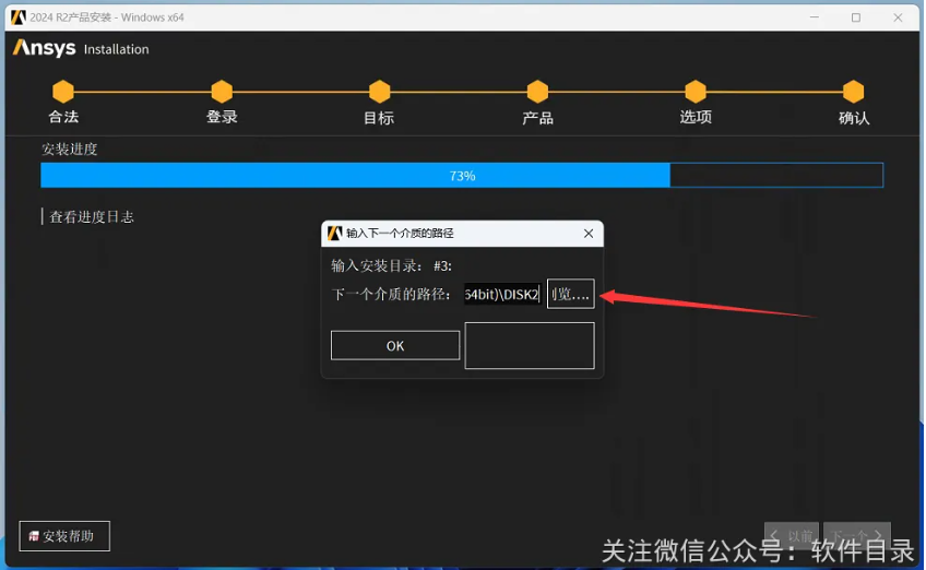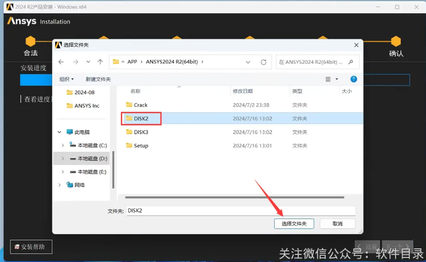 35.选择安装包解压后的【ANSYS2024 R2(64bit)文件夹中的【DISK2】,点击【选择文件夹】。