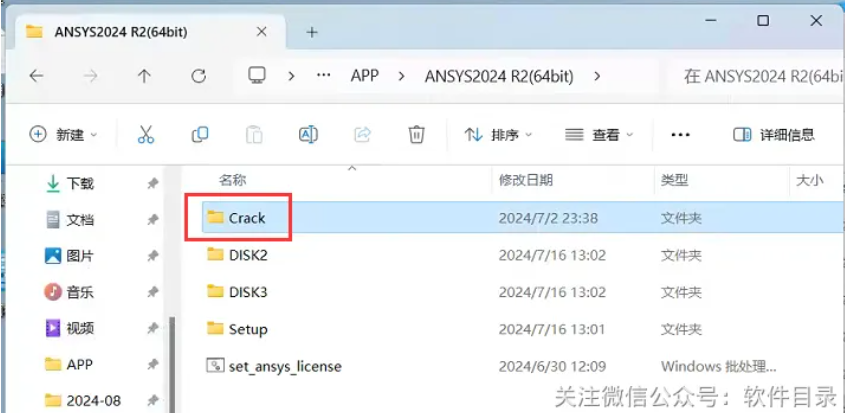 43.打开安装包解压后的【ANSYS2024 R2(64bit)文件夹,双击打开【Crack】文件夹。