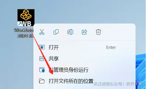46.鼠标右击桌面【Workbench 2024 R2】图标选择【打开文件所在的位置】。