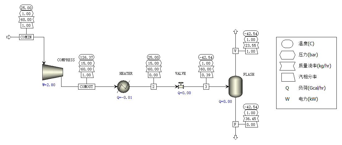 丙烷液化工艺首先将环境条件[298K,1bar(1bar=105Pa)]下的气态丙烷压缩到15bar,再冷却到298K,通过绝热节流膨胀至1bar,然后分离得到气态和液态丙烷。最后真诚地希望广大网友对该软件提出合理的建议,在此站长将对你的建议和意见表示诚挚的谢意和衷心的感谢。