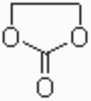 碳酸乙烯酯(EC) Ethyl Carbonate 分子式:C3H4O3。碳酸乙烯酯(EC)是一种性能优良的有机溶剂,可溶解多种聚合物;另可作为有机中间体,可替代环氧乙烷用于二氧基化反应,并是酯交换法生产碳酸二甲酯的主要原料;还可用作合成呋喃唑酮的原料、水玻璃系浆料、纤维整理剂等;此外,还应用于锂电池电解液中。碳酸乙烯酯还可用作生产润滑油和润滑脂的活性中间体。结构式如右图所示: