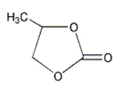 丙烯碳酸酯(PC) Propylene Carbonate 分子式:C4H6O3。碳酸丙烯酯为一种无色无臭的易燃液体。与乙醚、丙酮、苯、氯仿、醋酸乙烯等互溶,溶于水和四氯化碳。对二氧化碳的吸收能力很强,性质稳定。工业上采取环氧丙烷与二氧化碳在一定压力下加成,然后减压蒸馏制得。可用于油性溶剂、纺丝溶剂、烯烃、芳烃萃取剂、二氧化碳吸收剂,水溶性染料及颜料的分散剂等。结构式如右图所示:
