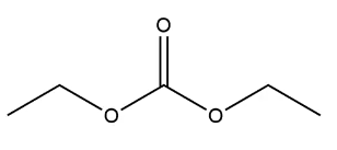 碳酸二乙酯(DEC) DiEthyl Carbonate 分子式:C5H10O3。碳酸二乙酯为无色液体,不溶于水,可混溶于醇类、酮类、酯类、芳烃等多数有机溶剂,主要用作有机合成、药物合成中间体,也可用作树脂、油类、硝化纤维以及纤维素醚等的溶剂。结构式如右图所示: